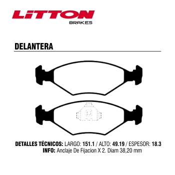 Pastillas Freno - Fiat: Duna - Fiorino - Uno - Volkswagen: Gol - Gol Trend - Saveiro - Senda - Voyage - Litton cantidad